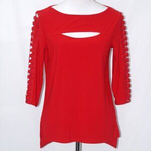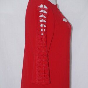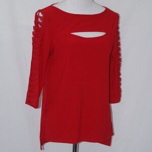 EUC Small Red Top Peekaboo Sleeves/Chest Love Scarlett Womens 18.5” pit to pit