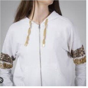 Stylish and comfortable, this white hoodie features eye-catching gold and copper sequin accents. Perfect for adding a touch of glamour to your casual wardrobe.