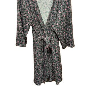 EUC Soft Lightweight Robe Gray w/Pink Flowers