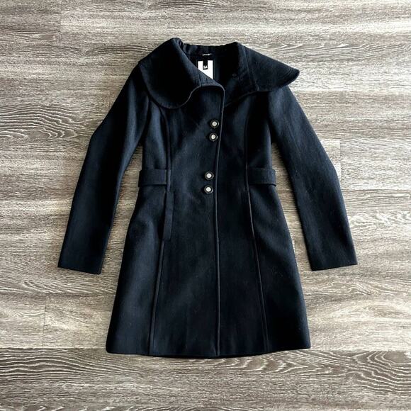 EUC Soia & Kyo Black Wool Blend Coat Small Oversized Collar Button Winter Jacket