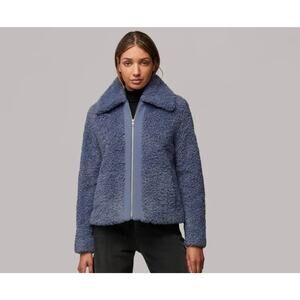 EUC Soia & Kyo DANIELA Faux Shearling Jacket Blue Size Medium Teddy Zip Coat