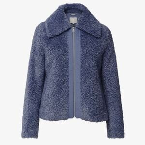 S&K Daniela jacket, faux shearling teddy, blue zip coat, chic outerwear, structured fleece jacket, cozy zip-up coat, winter layering, minimalist style, Y2K revival, streetwear chic, statement coat
