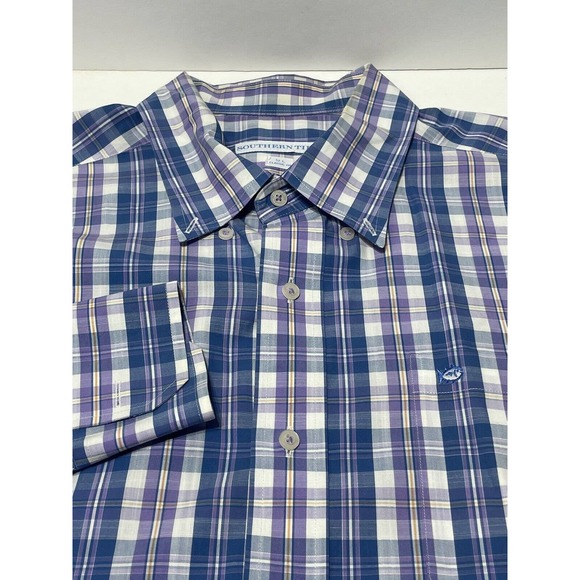 EUC Southern Tide Blue Purple Plaid Classic Fit Long Sleeve Button Shirt Large
