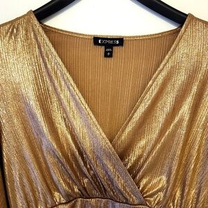 EUC Sparkly Gold Express Balloon Sleeve Holiday Blouse