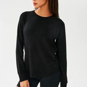 EUC SPLITS59 Warm Up Fleece Sweatshirt. Black, medium. Crewneck, curved hem. Very soft: 95% modal, 5% spandex. This classic sport inspired crewneck pullover is soft, versatile and ultra-flattering. The feminine drape stretch modal is finished with a boyish shirttail hem. MADE IN LOS ANGELES to minimize carbon footprint. BEST FOR: Warming up and cooling down after running, yoga, CrossFit, barre, Pilates, cycling and spin class. Retail $108. Smoke free clean home.
