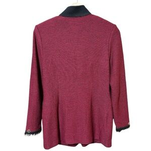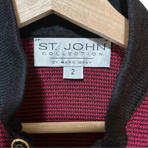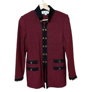 St John Collection By Marie Gray Womens workwear jacket/ blazer. Made with 80% Wool, Long in length. Jacket has gold button accents faux fur lining on the wrists of the jacket. It is a zipper closure with gold button accents. Beautiful, stunning jacket, ready to wear!