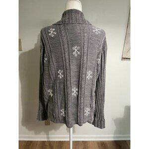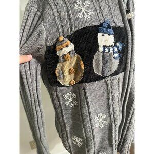 EUC Storybook Knits Sweater Gray Cable Knit Snowman Full Zip Cardigan Snowflake