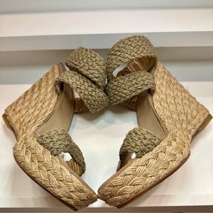EUC - Stuart Weitzman Alex Crochet Espadrille Wedge Sandals Swamp Khaki