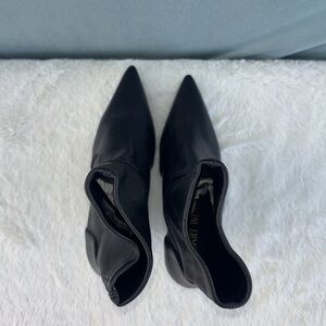 Stuart Weitzman black calf leather pointed toe 85mm high wedge heel ankle-length pull-on style