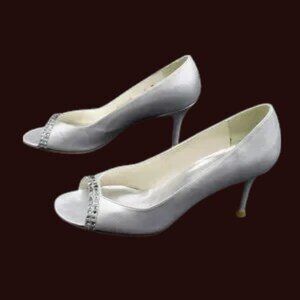 EUC Stuart Weitzman Silver & Rhinestone Peep Toe Pumps SirenRitz Ice Stunning
