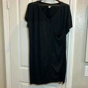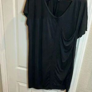 EUC Sundance Lagenlook Black Shirt Dress Shift Asymmetrical Linen Cotton Blend L