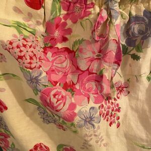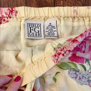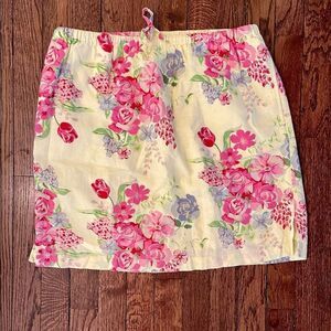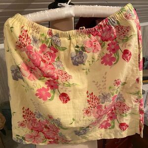 Gorgeous floral print - stretch elastic tie waist size medium - EUC!! Marshall Fields!!! Made from Linen Cotton ! Yellow lining .