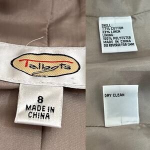 EUC TALBOTS Beige and Green Checked Pattern Cotton/Linen Blazer. Size 8