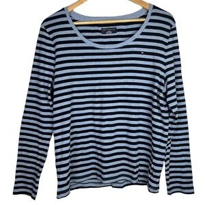EUC TOMMY HILFIGER Striped Scoop Neck Long Sleeve Blue Tee Women's Size XL