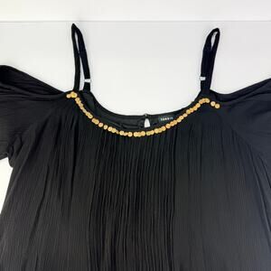 EUC TORRID 4XL Mini Gauze Black Cold Shoulder Trapeze Gold Accent Mini Dress