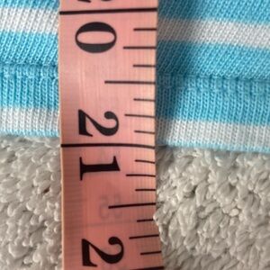 Blue and white striped bateau neck sweater. Lightweight knit. 3/4 sleeve. Cotton/rayon blend material. Size small petite. Non smoking home.