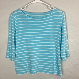 EUC Talbots Bateau Neck Blue and White Striped 3/4 Sleeve Sweater -Size SP