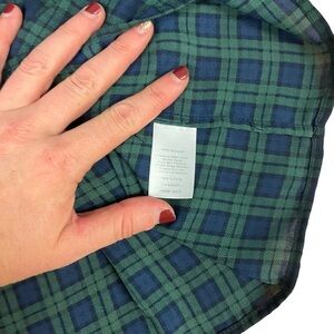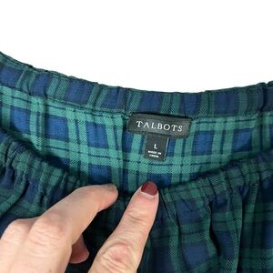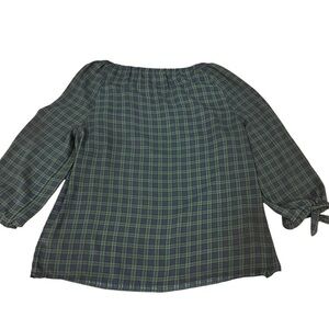 EUC Talbots Elastic Neck 3/4 Sleeve Green Plaid Relaxed Fit Blouse Sz L