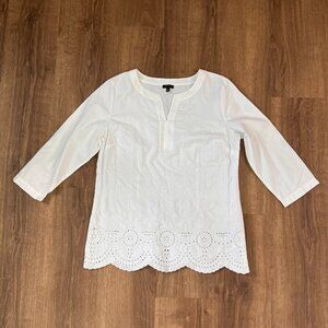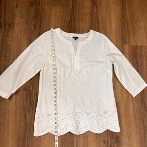 EUC Talbots Eyelet White Cotton Tunic Top Sz M