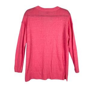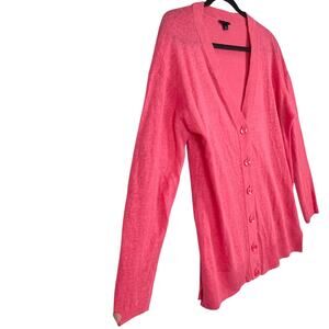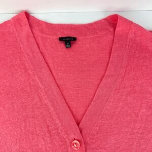 EUC Talbots M 100% Linen Knit Longline Cardigan Button Lightweight Coral Pink