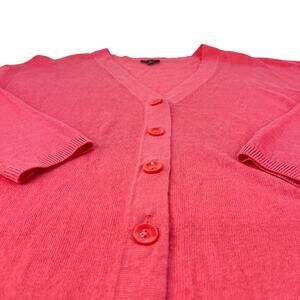 EUC Talbots M 100% Linen Knit Longline Cardigan Button Front Lightweight Coral Pink