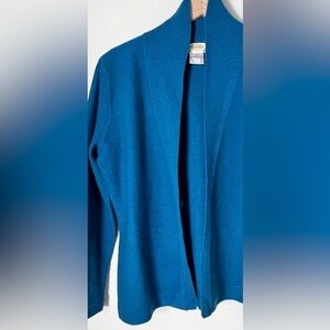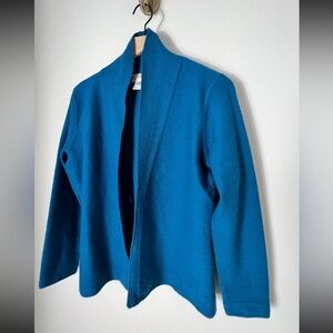 EUC Talbots Peacock Blue 100% Wool Open Cardigan Sweater