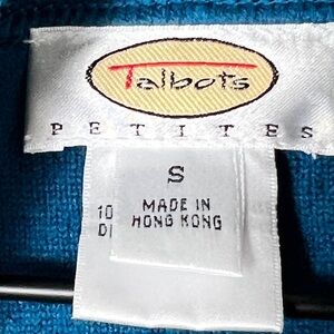 EUC Talbots Peacock Blue 100% Wool Open Cardigan Sweater Size Small
