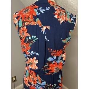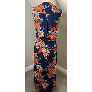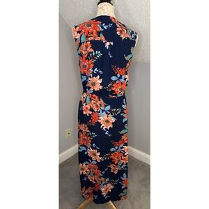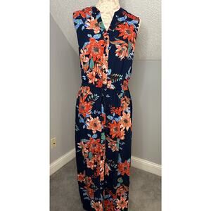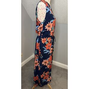 EUC Talbots Women’s Navy Blue Orange Green Tassel Floral Tank Dress Maxi Sz 12