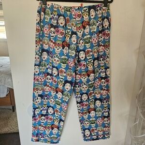 EUC The Cats Pajamas Sugar Skull Frida PJ Pants Women Small Cotton