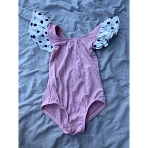 EUC This Tribe of Three kid's leotard sz: 2T pink polka dot