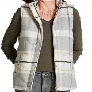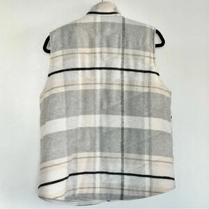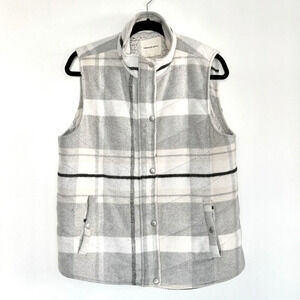 Stylish plaid vest by Thread & Supply. Features a button-up front. Perfect for layering. Shell: 60% Polyester, 40% Recycled Polyester. Lining is faux shearling. Machine wash cold.