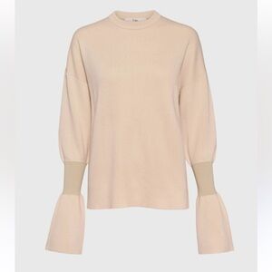 Tibi’s Merino Wool Bell Sleeve 🔔 Sweater brings a cozy, yet luxurious appeal to day wear. This piece features a delicate blush hue, belled sleeves, with ribbed contrast, creating a dramatic billowing effect.