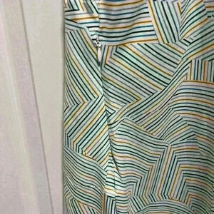 Geometric Abstract Blue and Gold striped pattern knee length athletic dress