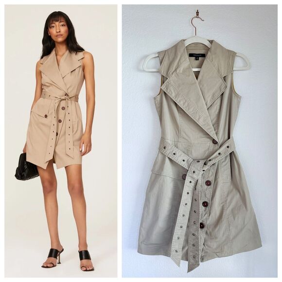 EUC Toccin NY Sleeveless Belted Wrap Trench Mini Dress in Khaki Tan Size 0