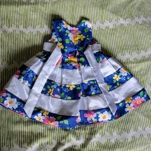 Beautiful formal dress in vivid cobalt blue floral and white stripes. 100% machine washable polyester with slubby raw silk texture. Perfect for Easter, weddings, flower girl! Worn twice, excellent condition.