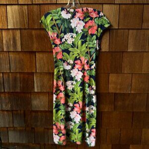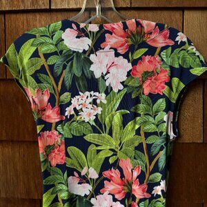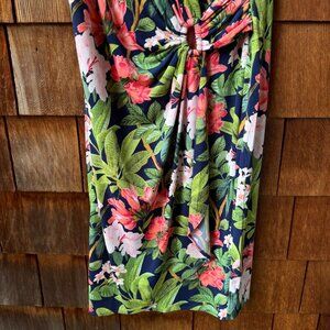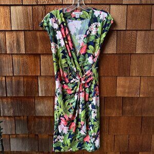 In Excellent, Gently Worn Condition! Tropical Floral Print Tommy Bahama Clara Faux Wrap Dress in Women's Small - Live lavishly and look luxurious in this ultra-flattering Clara dress, crafted from a smooth, sculpting fabric with just enough stretch. It's faux wrap design creates a beautiful drape, secured with a waist detail that adds an extra