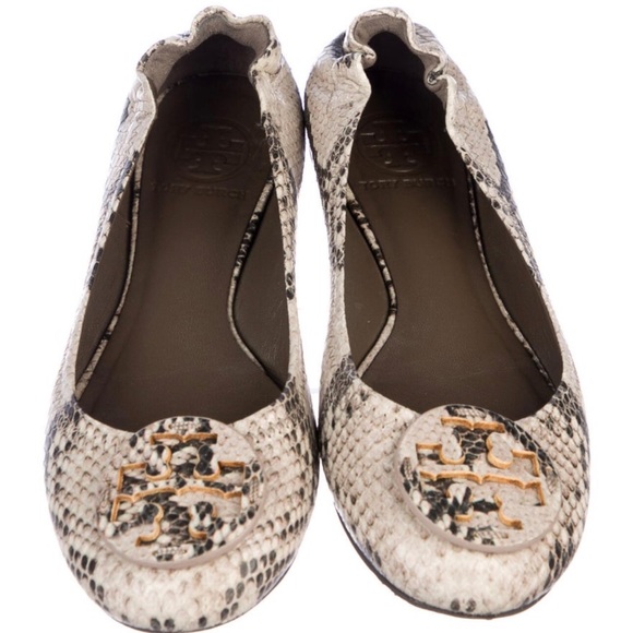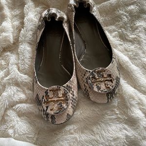 EUC Tory Burch Reva Roccia Python (Tonal Logo) Flats