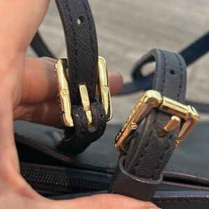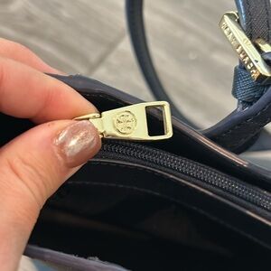 EUC Tory Burch York Buckle Tote Navy Purse Bag Saffiano Leather