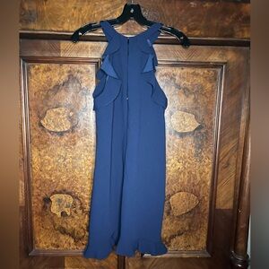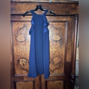 EUC Trina Turk- Navy Blue Halter Ruffle Dress. Size 0.