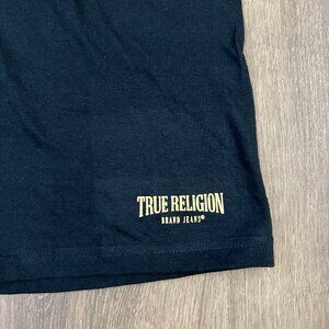 EUC True Religion Black V-Neck T-shirt Gold Logo Sz XL