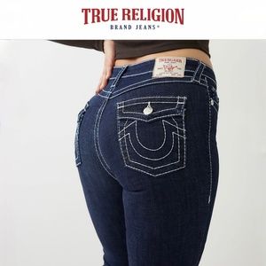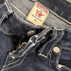 EUC [True Religion] Low-Rise <Becky> Boot Cut Blue Jeans + Rhinestones | 25 0 XS