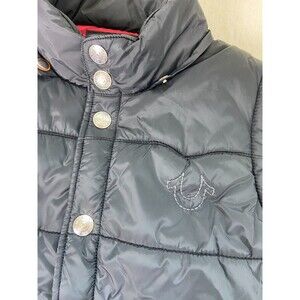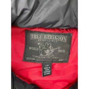 EUC True Religion World Tour Men’s L Black Snaps Full Zip Down Puffer Vest Biker