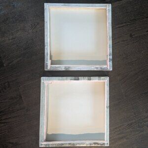 Two pieces of wall art, each measuring 14 inches square