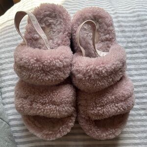 EUC UGG Fluffita sz 6 Rose Grey platform Soft Pink Fuzzy Slippers pastel