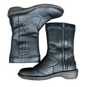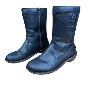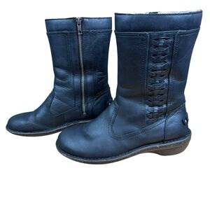 EUC UGG Kaleen Braided Leather Mid-Calf Shearling Lined Black Boots Women’s 7
