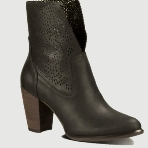 EUC UGG Thames Seaweed Perf Perforated Eyelet Ankle Boot Black Size 7.5