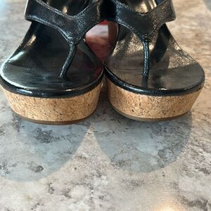 Excellent condition, worn once. Nothing wrong with them. Black leather. Comes from a smoke free home. Wedge measures 3”