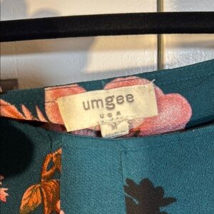 EUC This stylish blouse by Umgee showcases a vibrant floral design in teal and pink, featuring flutter sleeves and a relaxed fit. The 3/4 sleeve length and flowy fabric make it an ideal choice for both casual and dressy occasions.