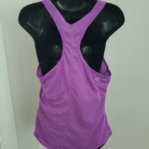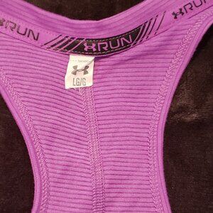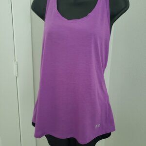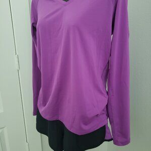 Excellent condition. Only worn once. Purple and Black Under Armour Heat Gear shorts with tank and long sleeve shirt. 3 pieces - Long Sleeve (Medium), Tank (Large), and Shorts (Medium). Shirts have built-in panties, draw string and side pockets.