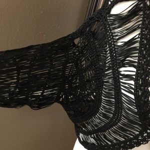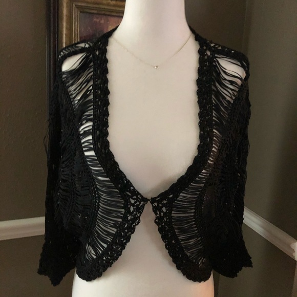 Unique jacket that can add some pizzazz to any outfit. 3/4 sleeves. No sizing tag, but fits smaller sizes.